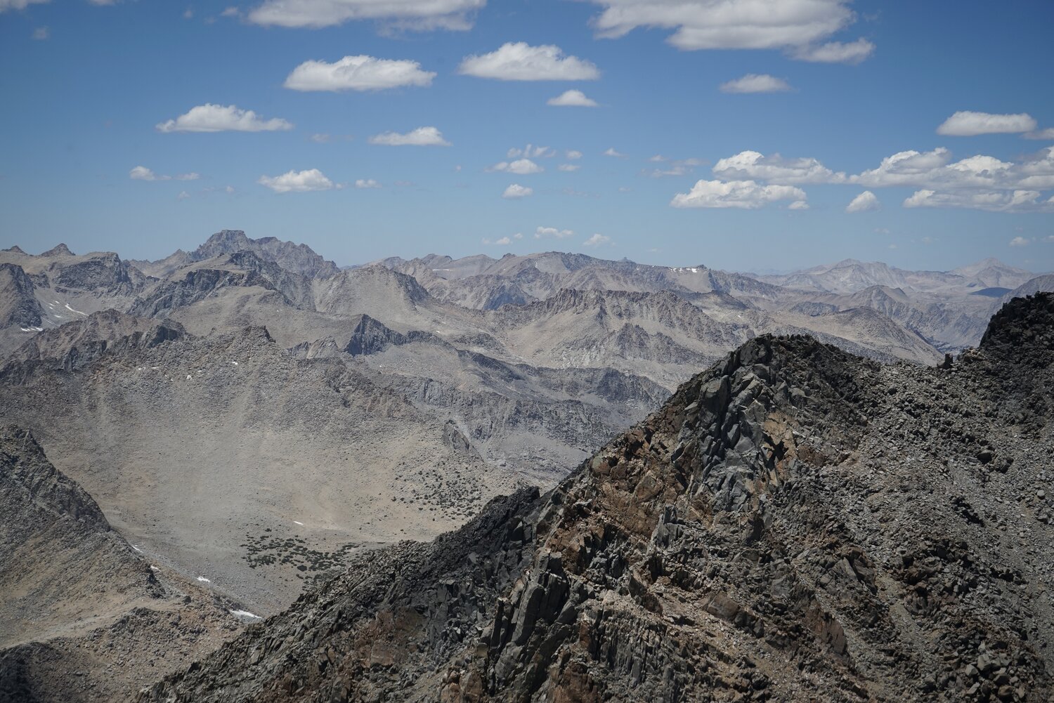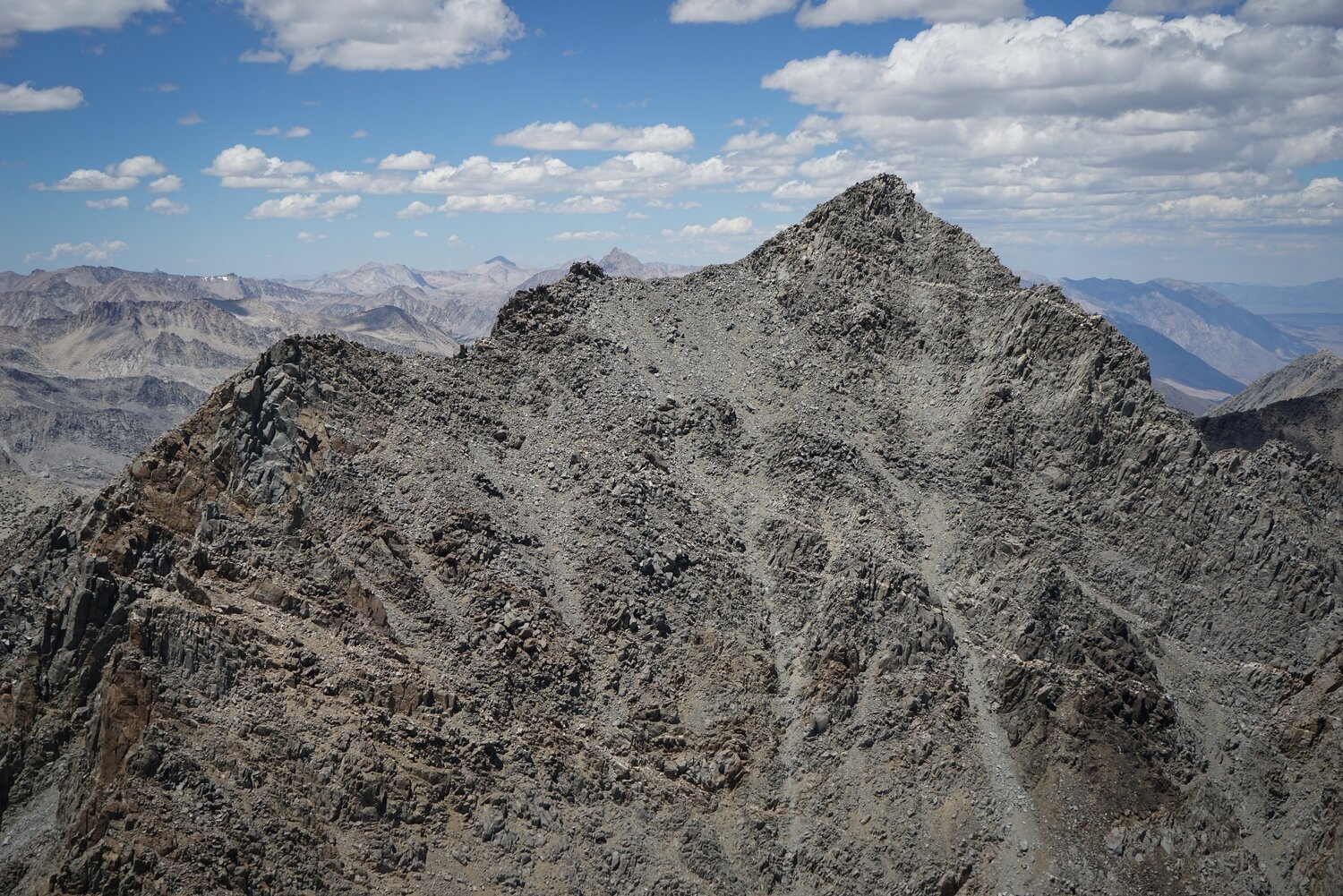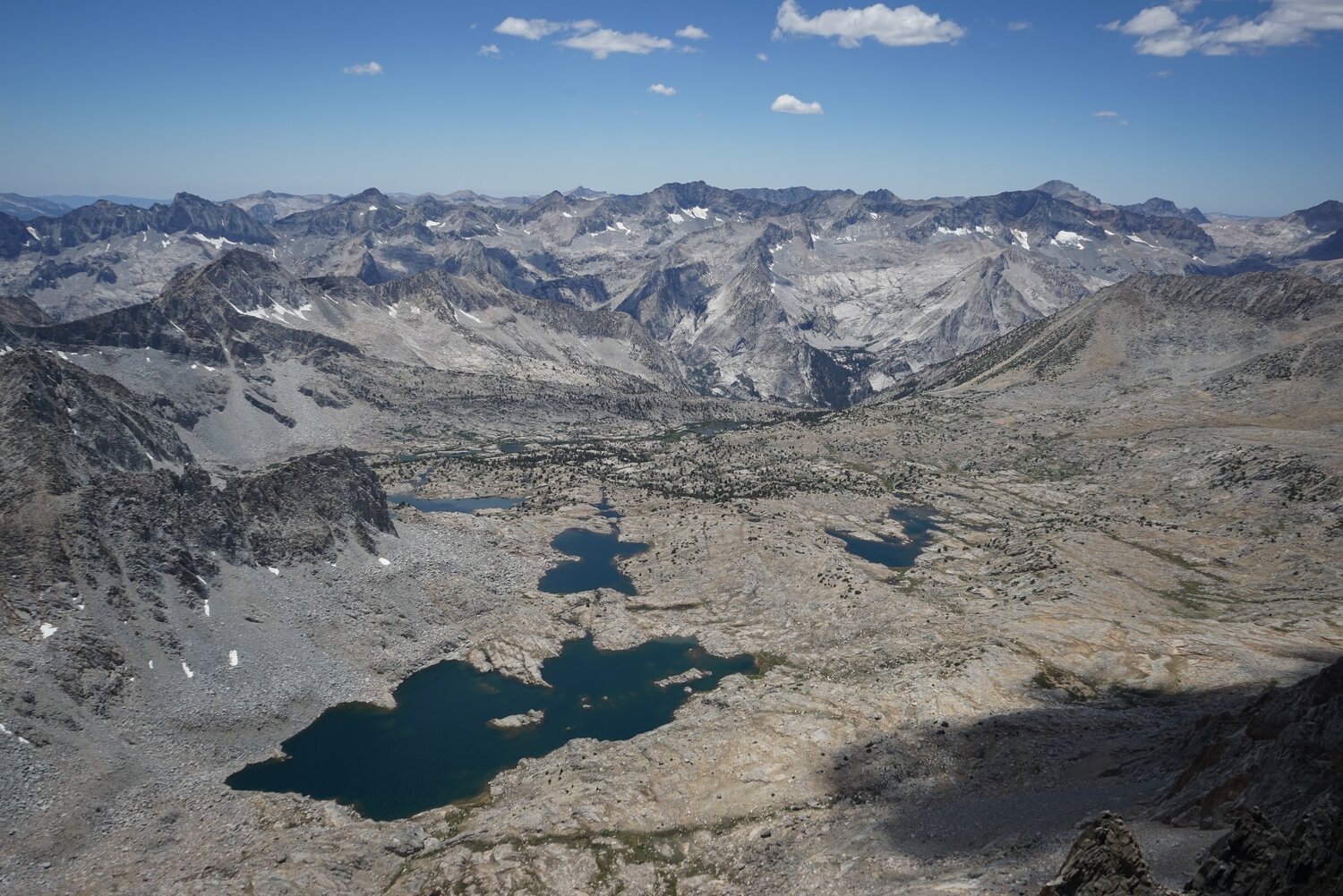A jumble of mountains just north of Bishop Pass, including Mount Darwin.