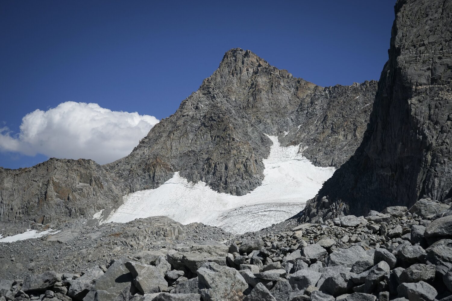 Shannon climbing down off of the moraine. We tried to follow a slightly different path through the boulder, but it didn’t seem to save us any time really. It was just really difficult travel over these large, loose rocks.