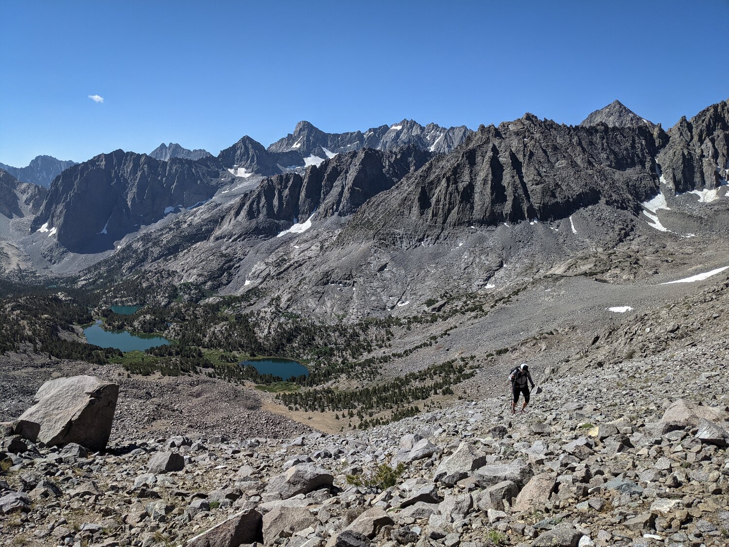 Looking back down at the lakes of the North Fork of Big Pine Creek.