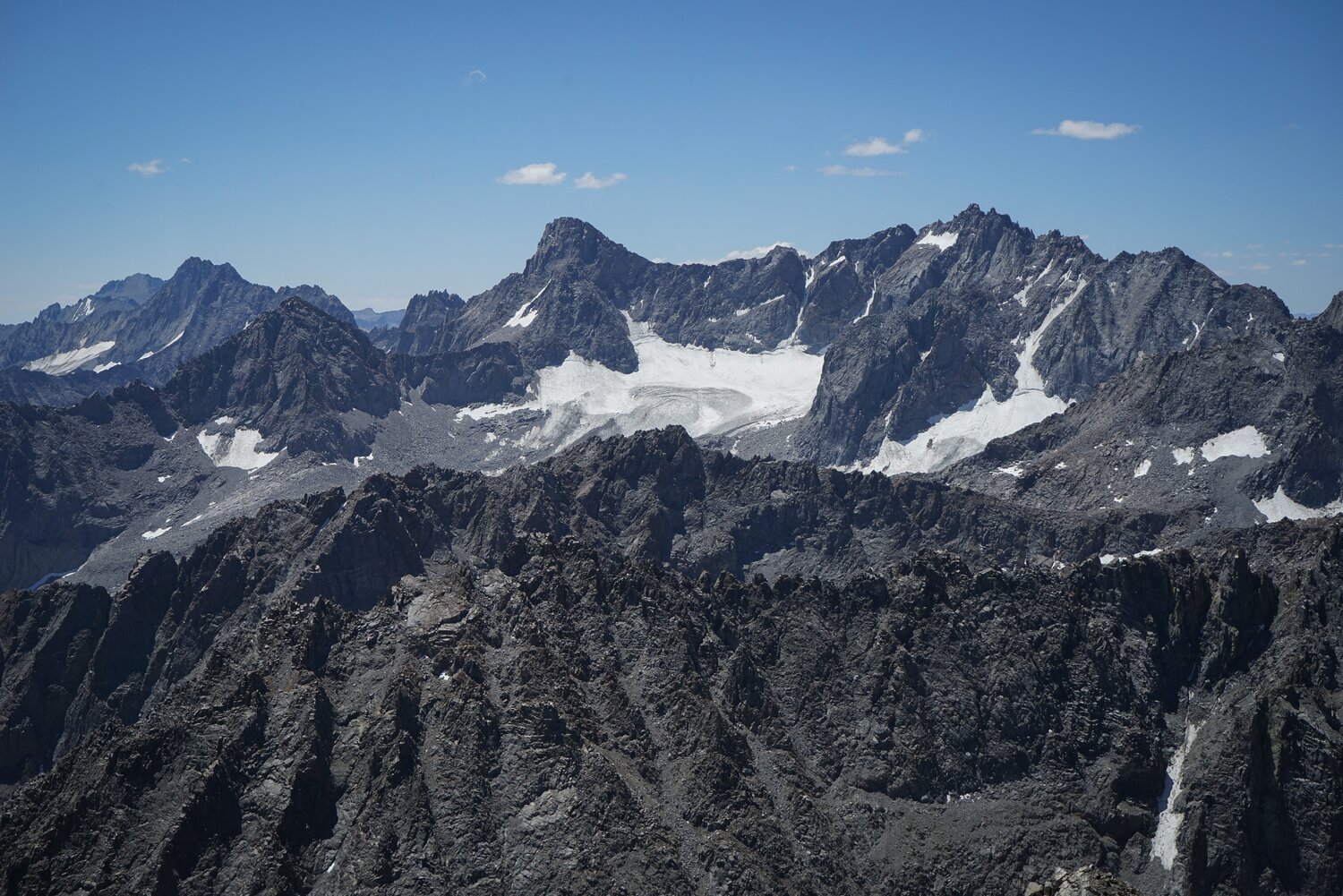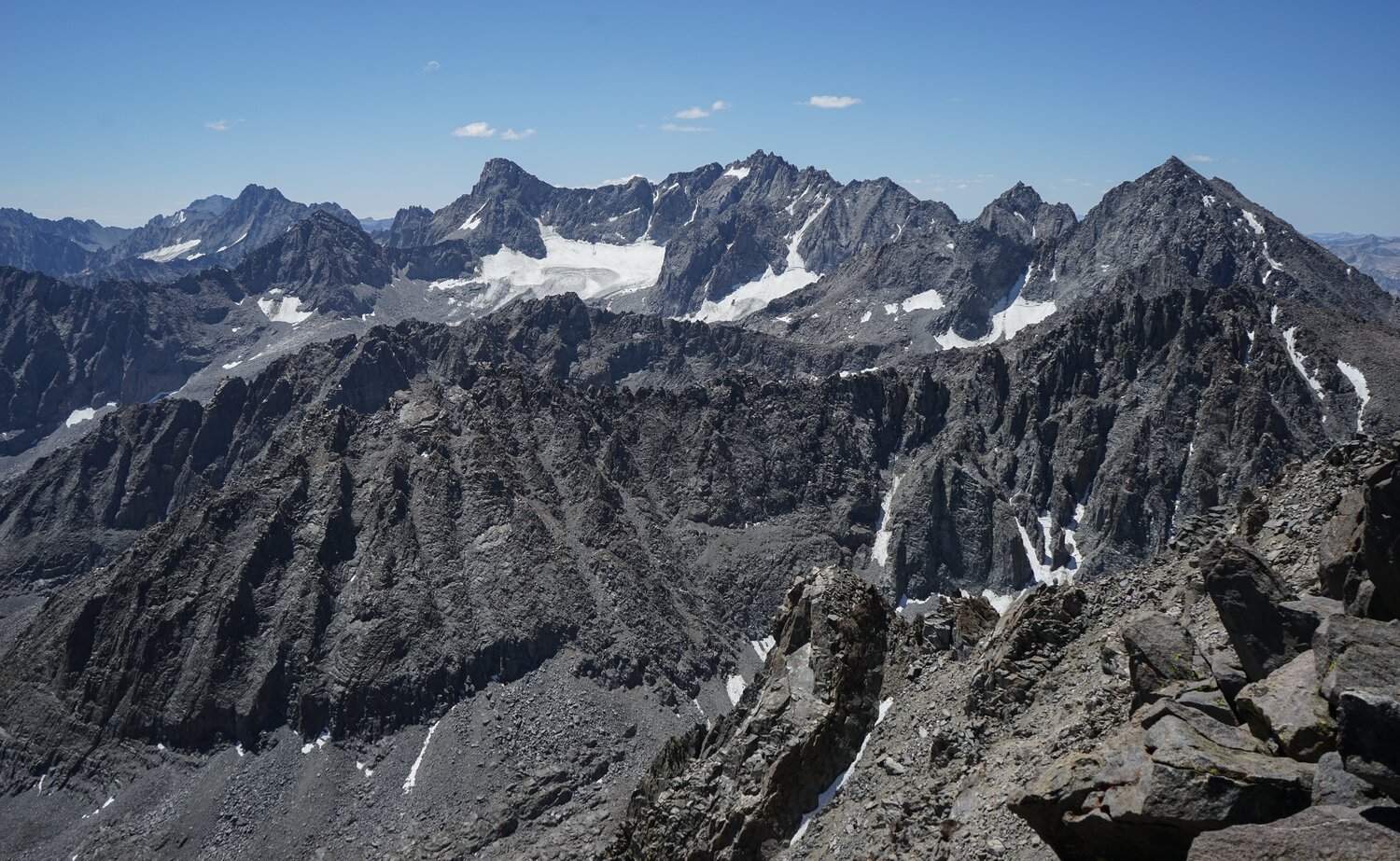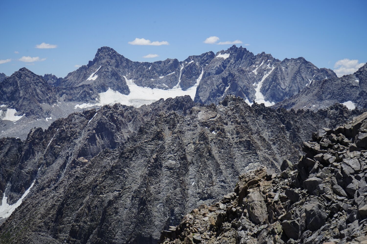 The impressive view south to the Palisades from the summit of Cloudripper.