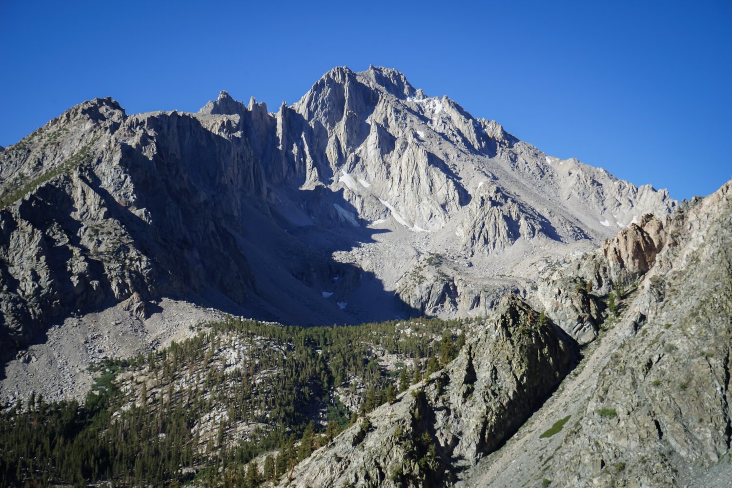 For my second outing of the week I selected a slightly harder objective, at least compared to yesterday’s outing to Mount Goode. Earlier in the year I had linked up University Peak and Independence Peak in the Onion Valley area and I planned to return to climb the trifecta of SPS peaks north of the trail here: Kearsarge Peak, Dragon Peak, and Mount Gould.