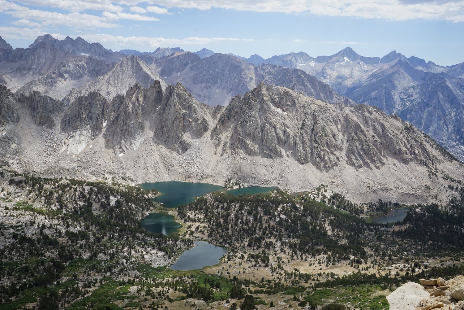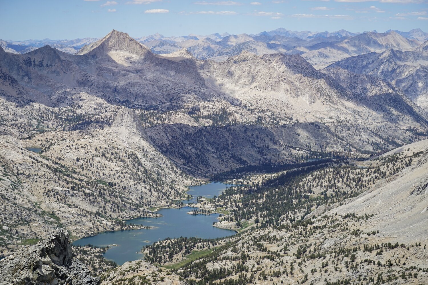The Rae Lakes area from the summit of Dragon Peak.