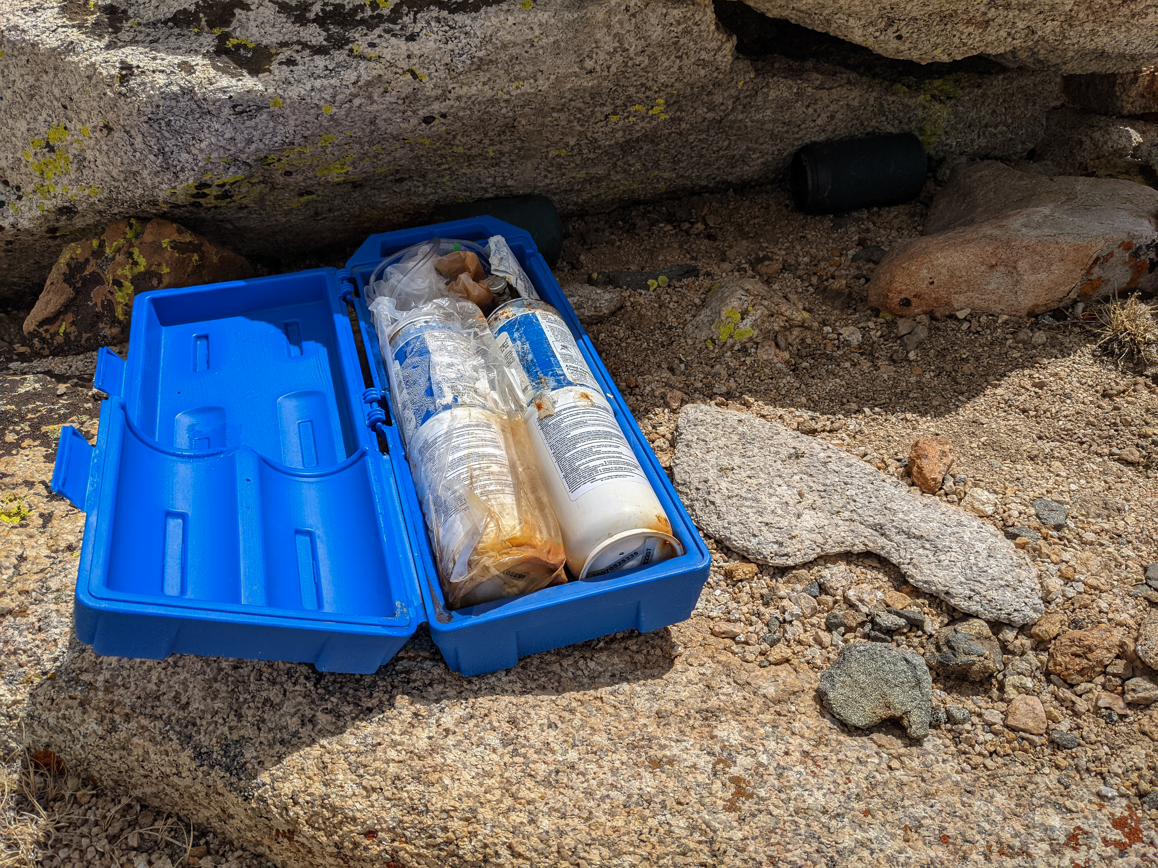 I also found a bunch of garbage hidden under a rock. There were some old oxygen cans and some old Coleman propane fuel canisters. Not sure what they were from, maybe a rescue of some sort?