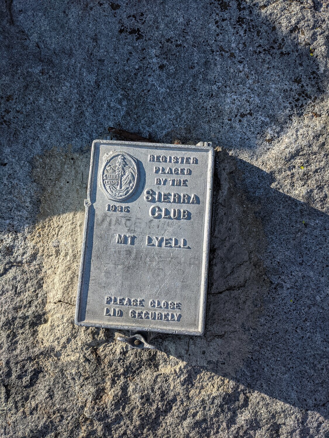 Mount Lyell is outfitted with one of the Sierra Club’s bombproof summit registers. Unfortunately all of the books were full and there were so many entries that it wasn’t particularly interesting to try and read through.