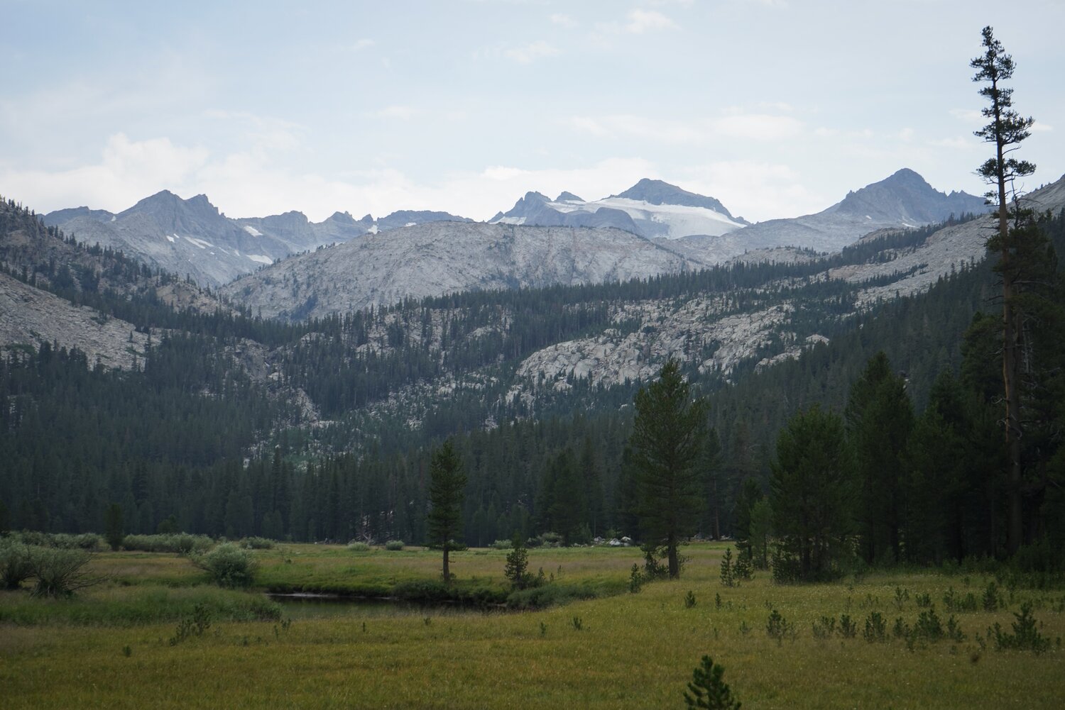 Looking down towards the meadows of Lyell Canyon from above. We passed a couple of groups heading up for Donohue Pass, but it wasn’t terribly busy. We took a break for more water and a snack once we reached the head of Lyell Canyon. It rained just enough to make us pull out our raincoats, but let up before long.