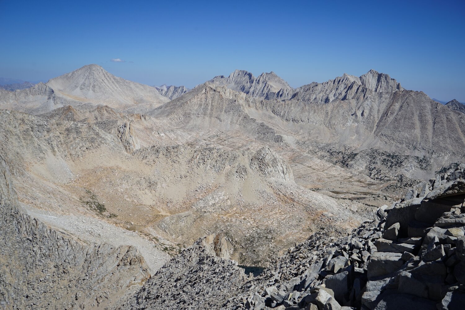 There was an awesome view south of the Glacier Divide and some of the higher peaks of the Evolution Group from the summit.