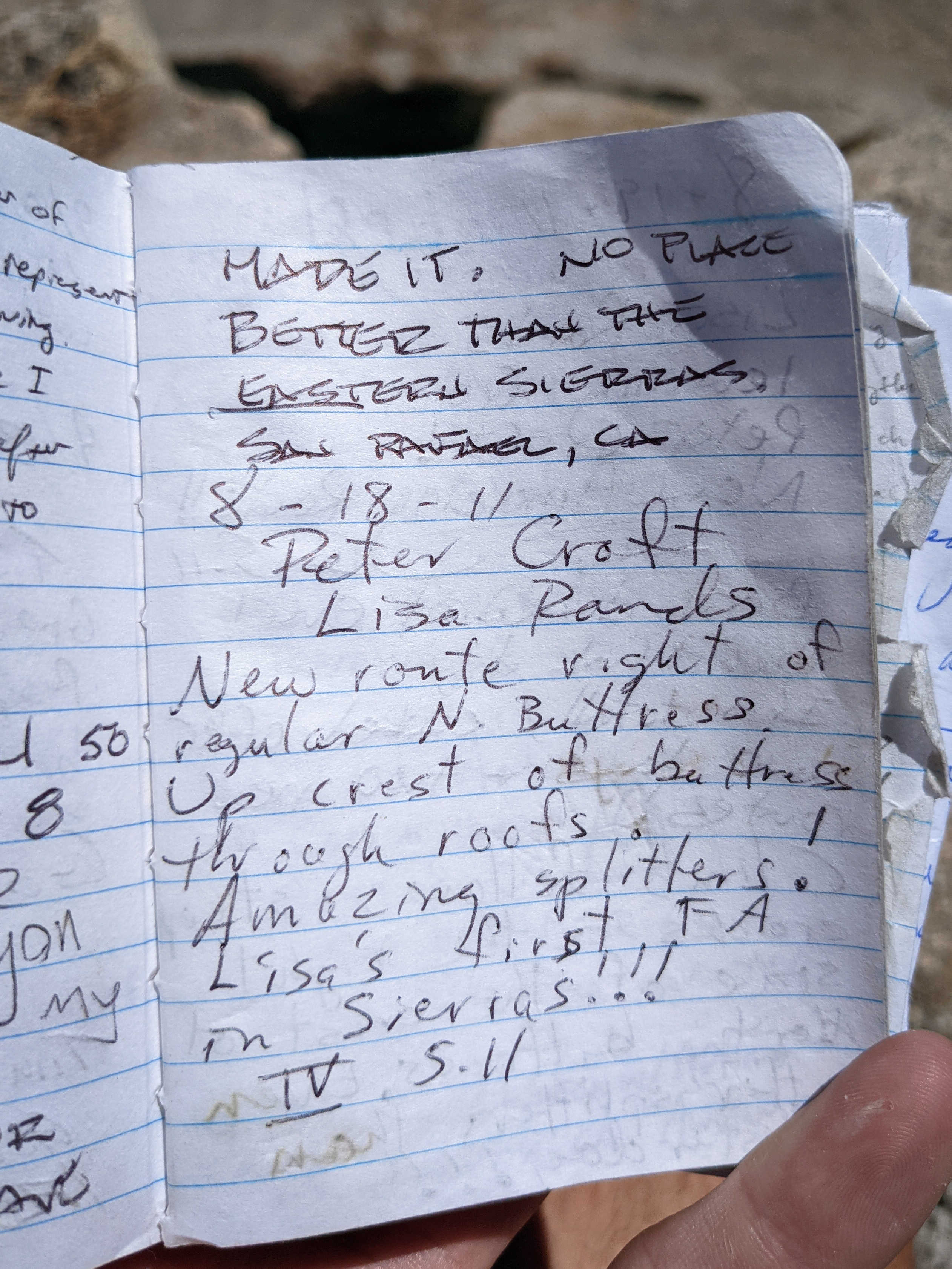 And several Peter Croft entries from his trips up the various routes on the North Buttress.