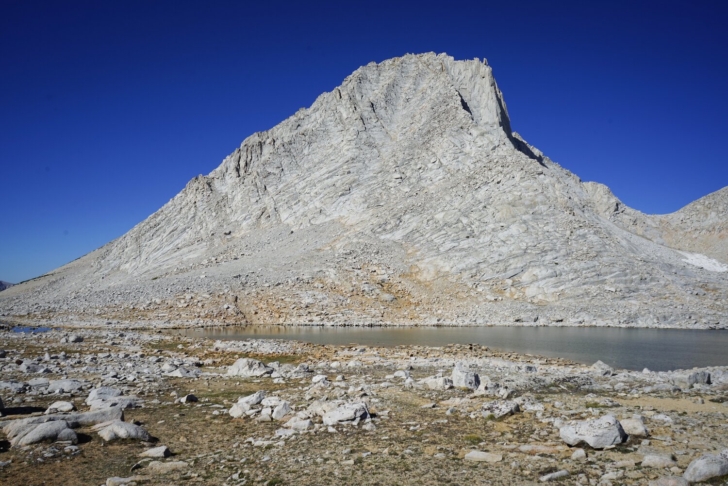The impressive North Buttress from below. I stopped to refill my water and wash my feet at Lake 11658 before heading around it to the north. I think this way may have been a bit easier than the way I ascended.