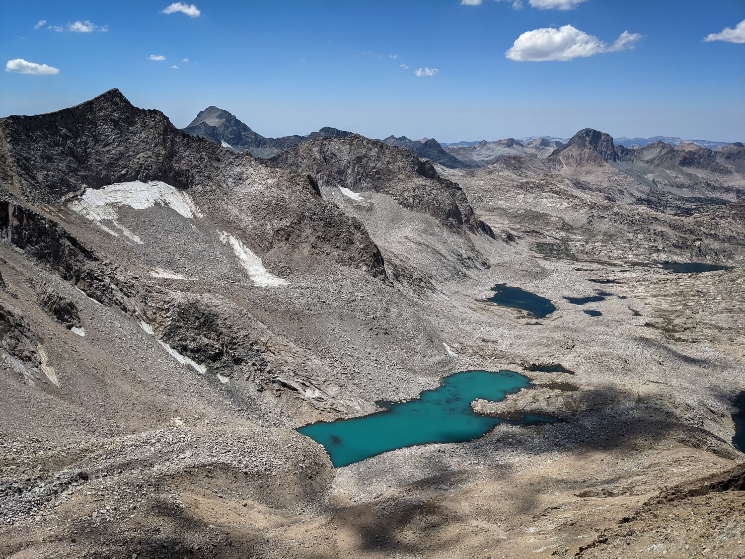 In the high, rugged region of the Sierra Nevada just east of Muir Pass lies a collection of peaks named by Theodore Solomons after famous evolutionary scientists of the time. I’m sure you could look up the exact set of peaks that comprise the Evolution Group and which were named by Solomons himself, but a quick search reveals it’s most of the named peaks south of and including Mount Lamarck, north of Mount Thompson, west of the Sierra crest, and east of the John Muir Trail. Mount Mendel and Mount Darwin will be the most recognizable for those who paid attention in high school biology, the other six or so seem to be a collection of evolutionary scientists whose findings were either too basic or too complicated to be included in the AP Biology curriculum.