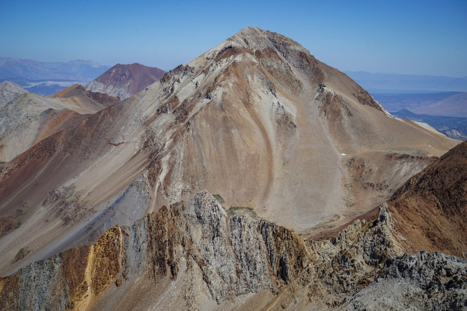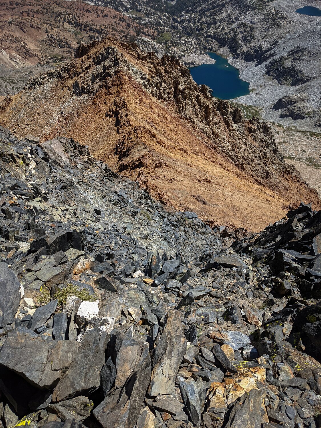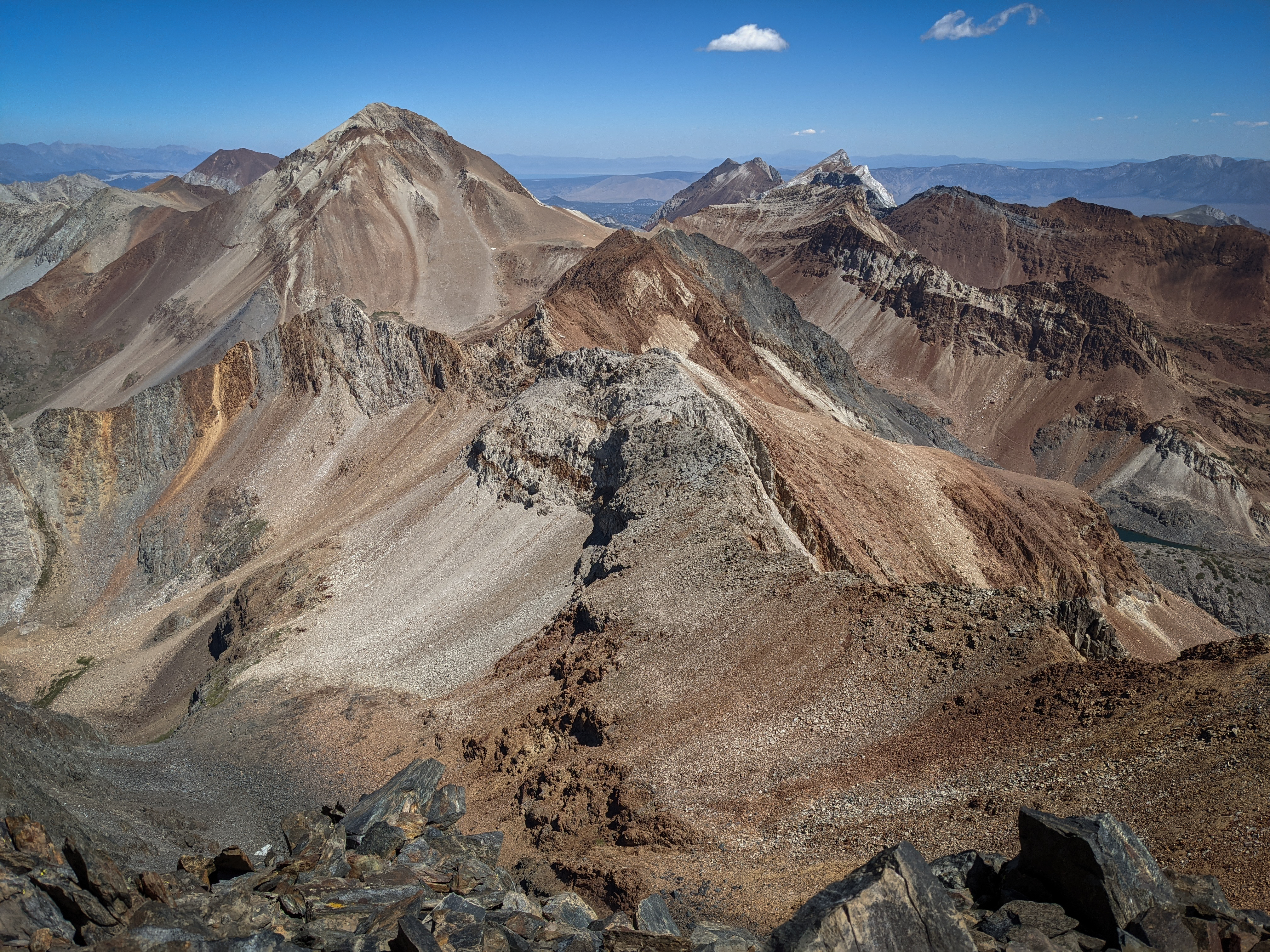 Looking north towards Red Slate Mountain, with Bloody Mountain behind and to the left and Mount Baldwin and Mount Morrison behind and to the right.