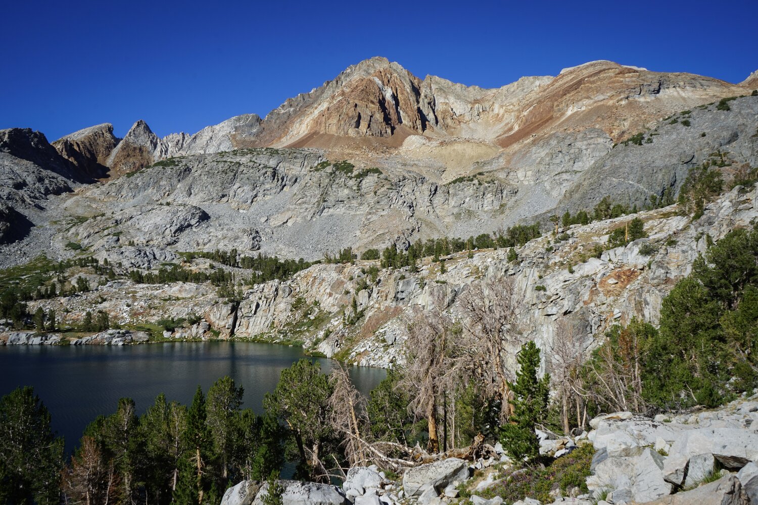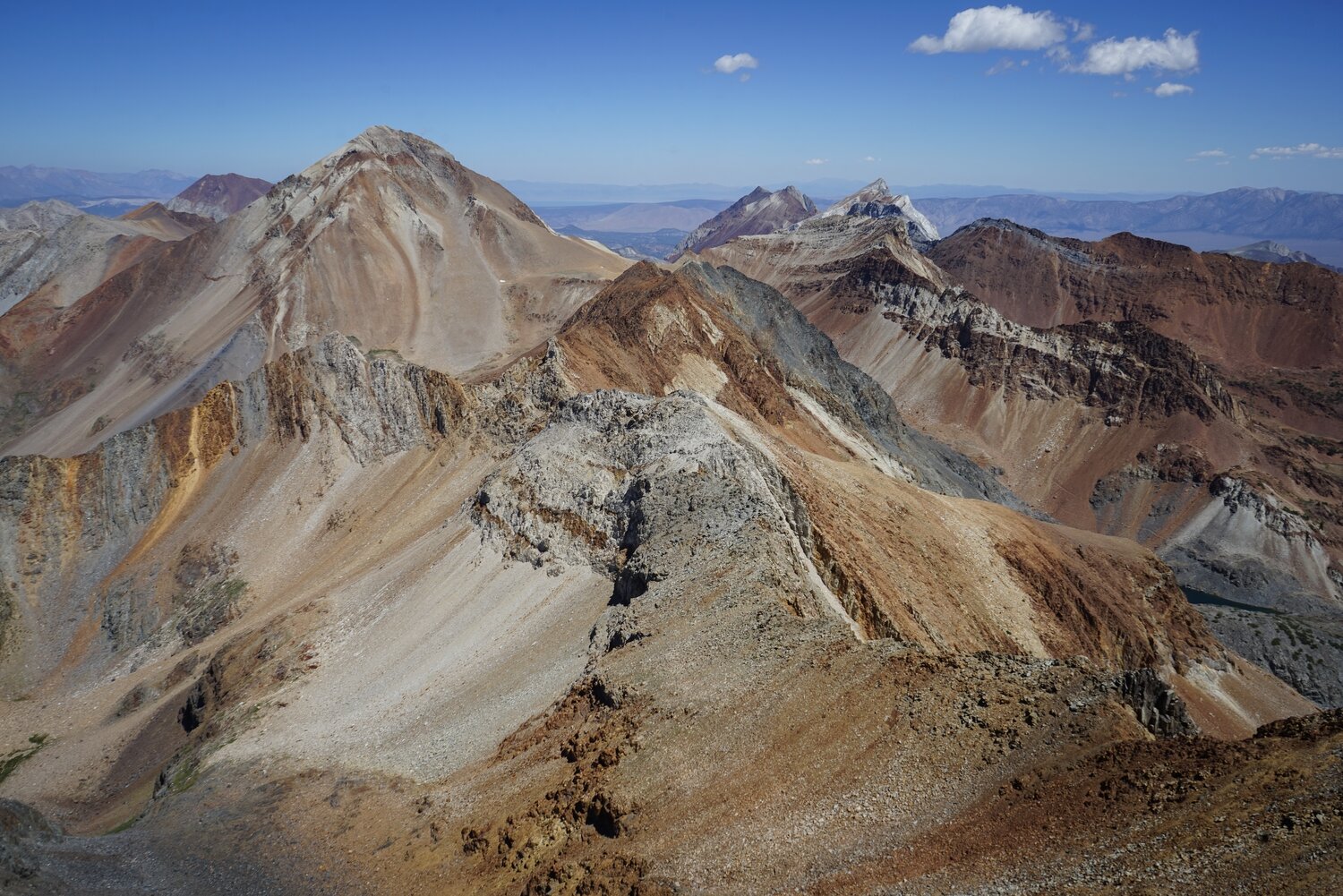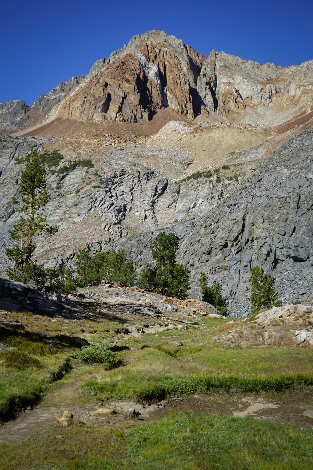 Looking north towards Red Slate Mountain, with Bloody Mountain behind and to the left and Mount Baldwin and Mount Morrison behind and to the right.