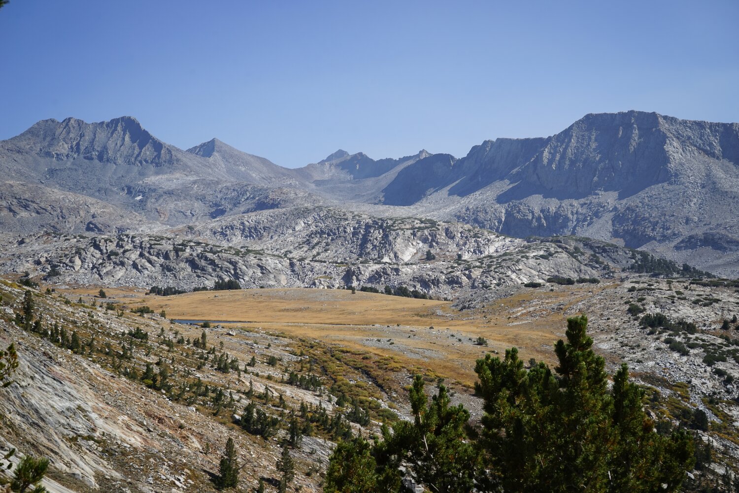 Climbing up Lewis Creek, with Half Dome poking out far to our west. We thought the smoke might be starting to clear in advance of the coming cold front, but we couldn’t tell for sure.