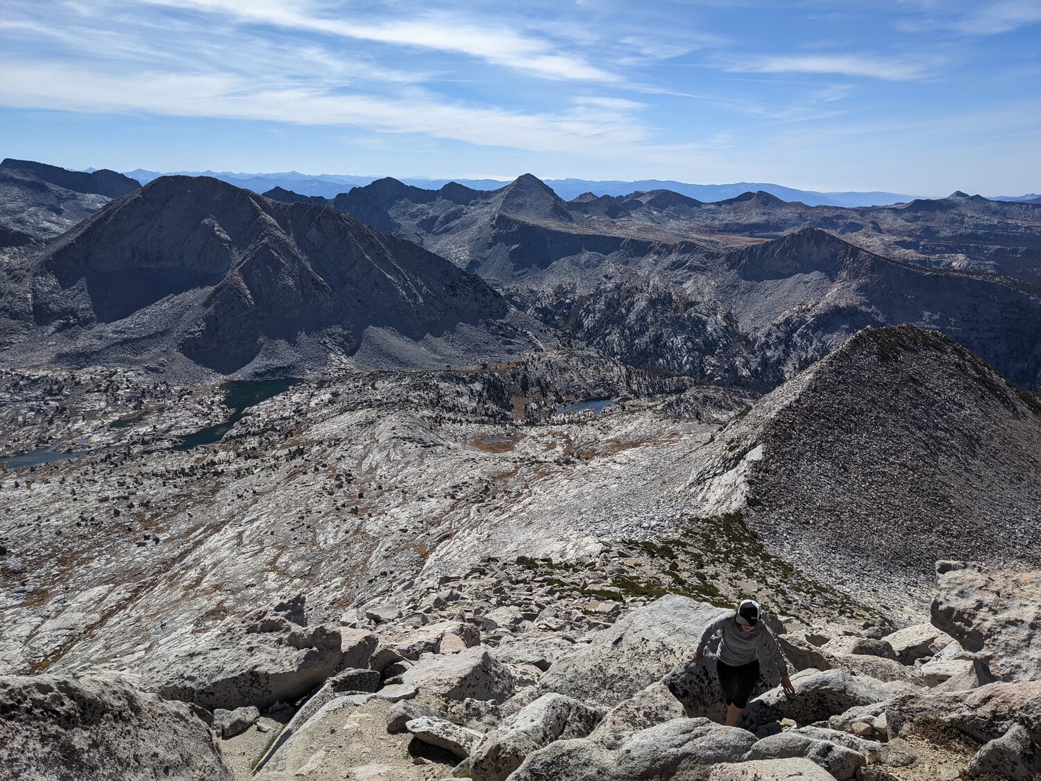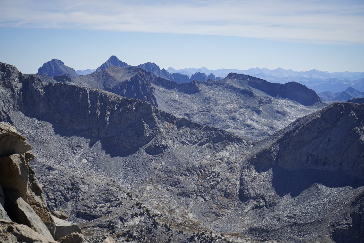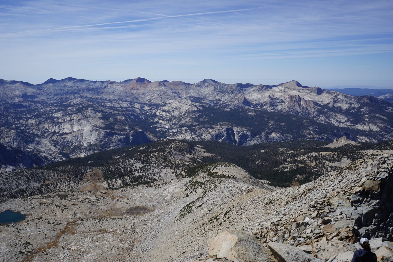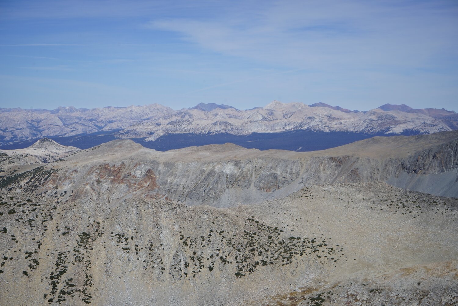 Some more difficult to distinguish peaks to the north. Mount Conness is visible, as is Matterhorn Peak, and some of the red-tinted peaks to the southeast of those.