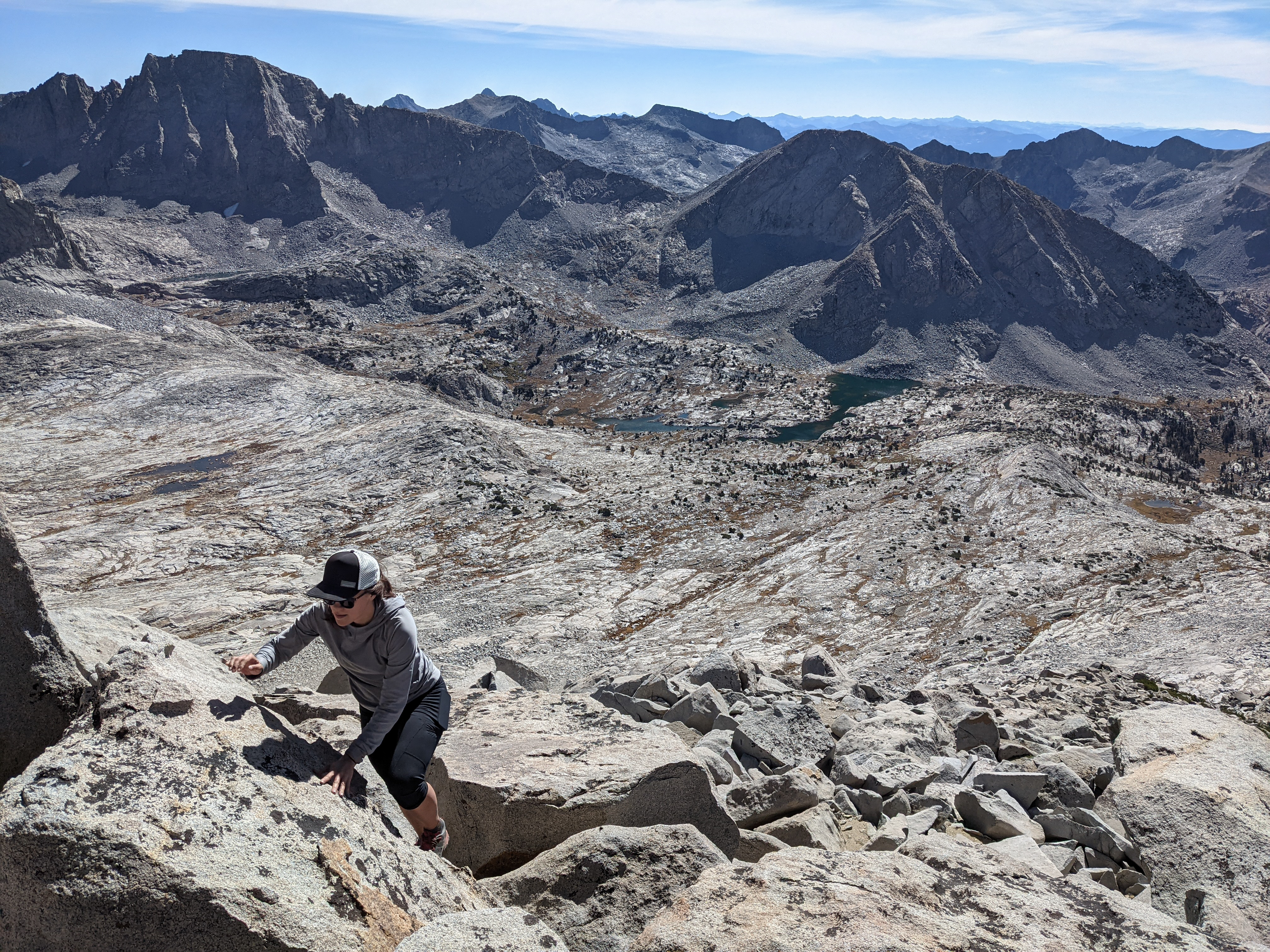 Shannon climbing boulders towards Mount Florence. The weather had returned to the beautiful California sunshine we’ve been spoiled by for so long now.