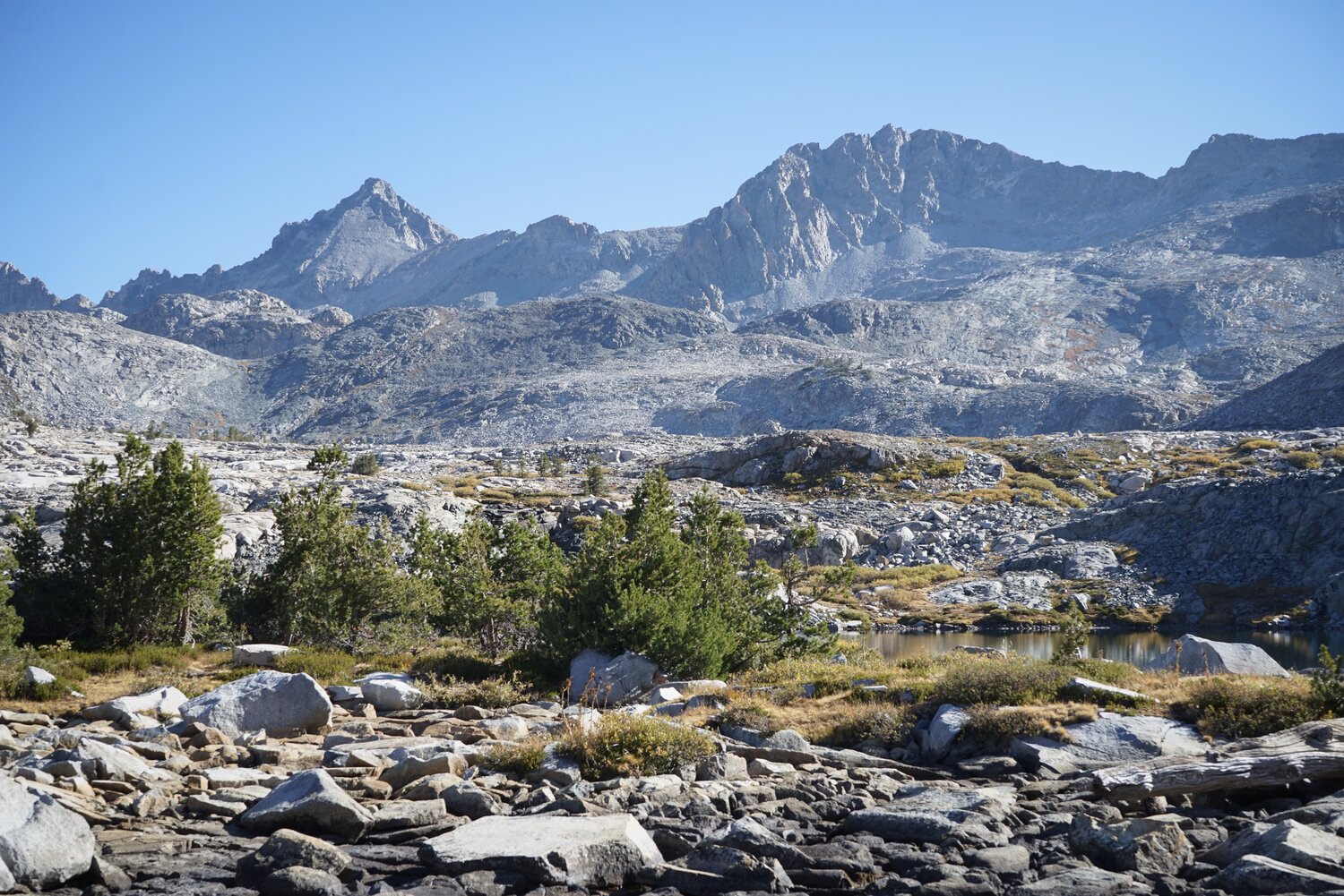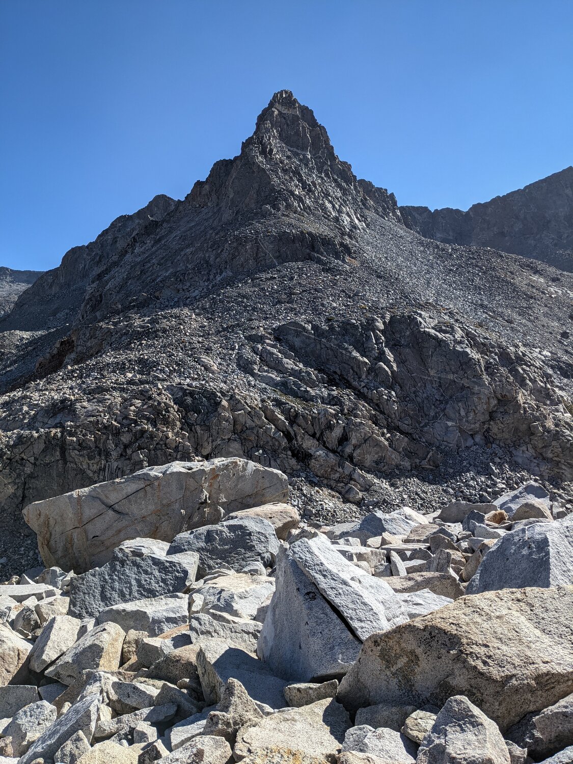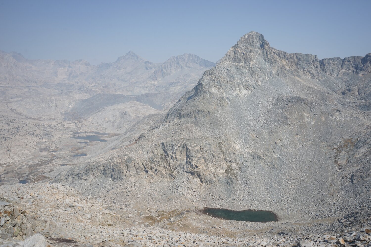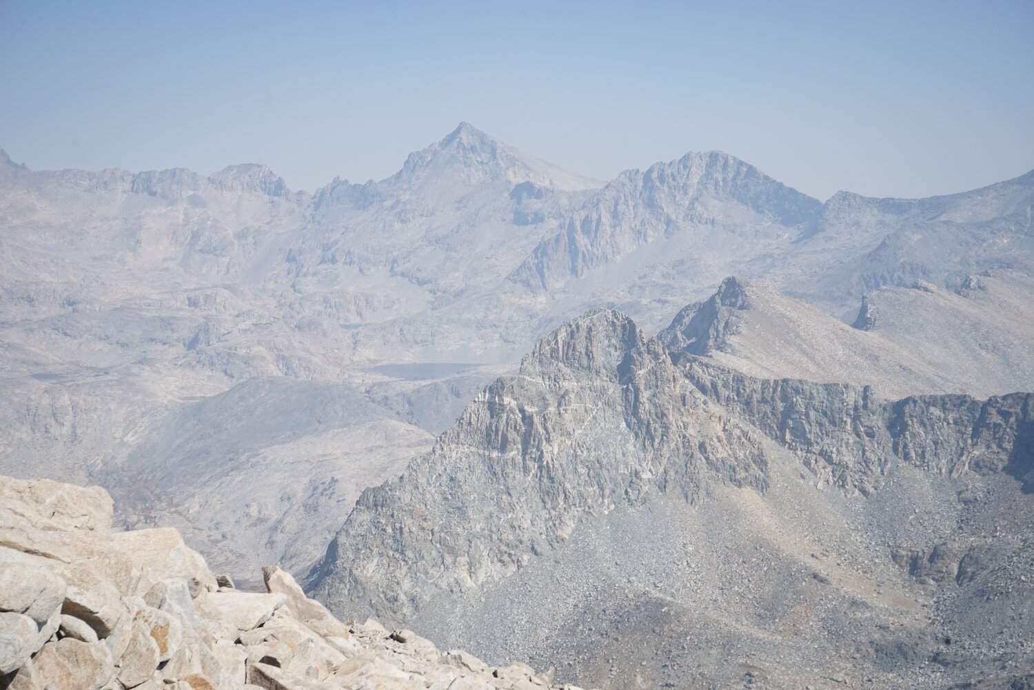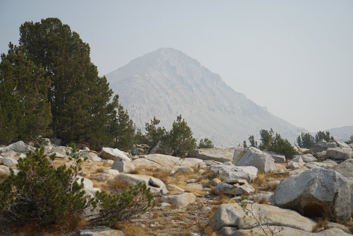 Mount Ansel Adams and Rodgers Peak from the slope of Foerster Peak. A bit of haze was moving in from the fires to the south, but it wasn’t terrible.