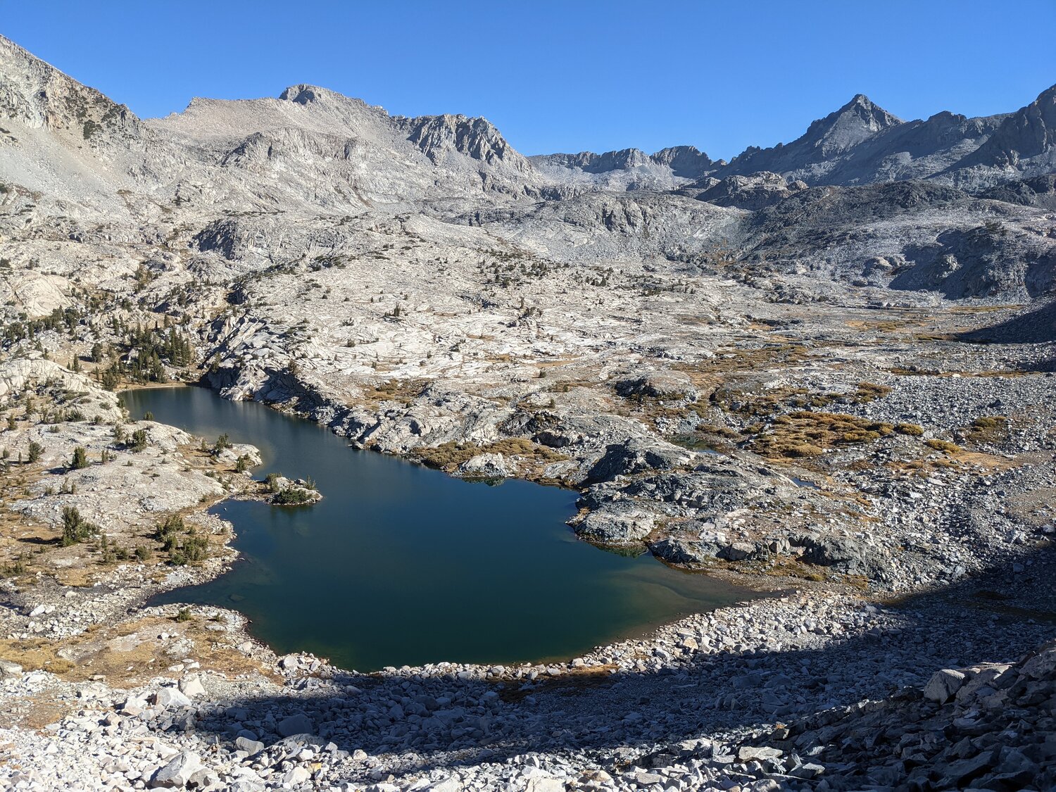 We got up with the sun again today and had our coffee as the sunlight crept toward our camp. Our plan for the day was to climb out of the Lyell Fork by way of Foerster Peak and follow the Yosemite High Route south to Harriet Lake where we’d rejoin the Isberg Pass Trail and hike back to Tuolumne Meadows.