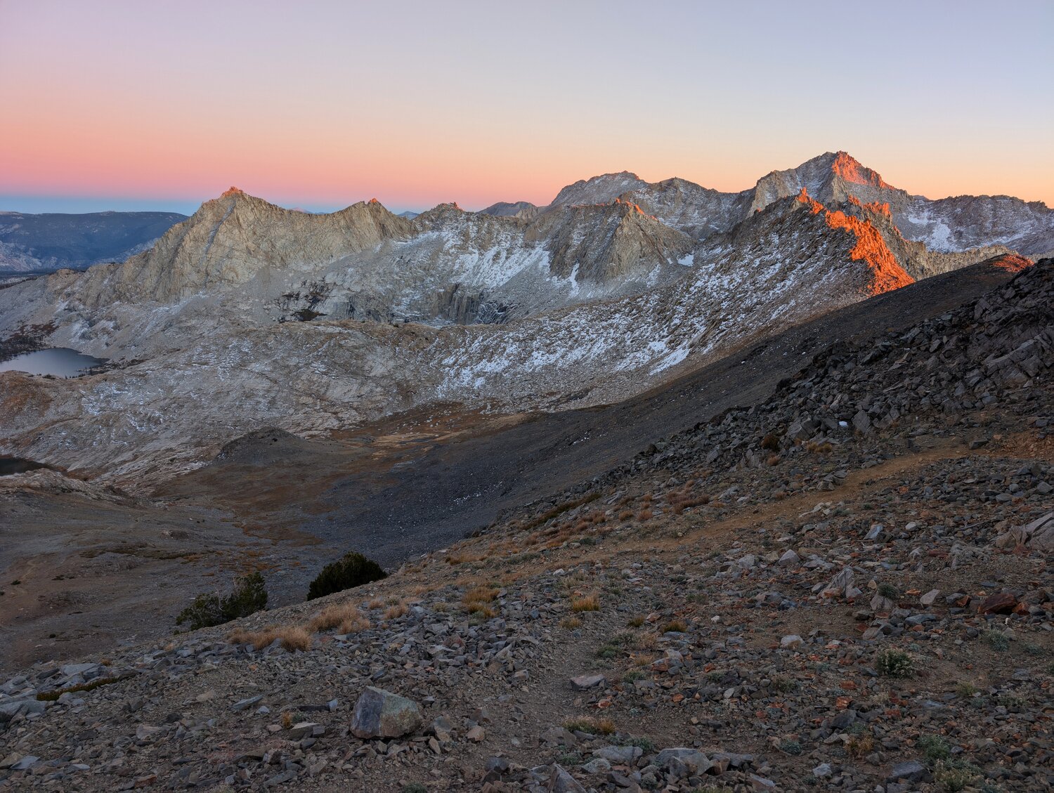 Alpenglow on the peaks to the south from Black Rock Pass. It was freezing at the pass, but fortunately there wasn’t too much wind. The views were beautiful though.