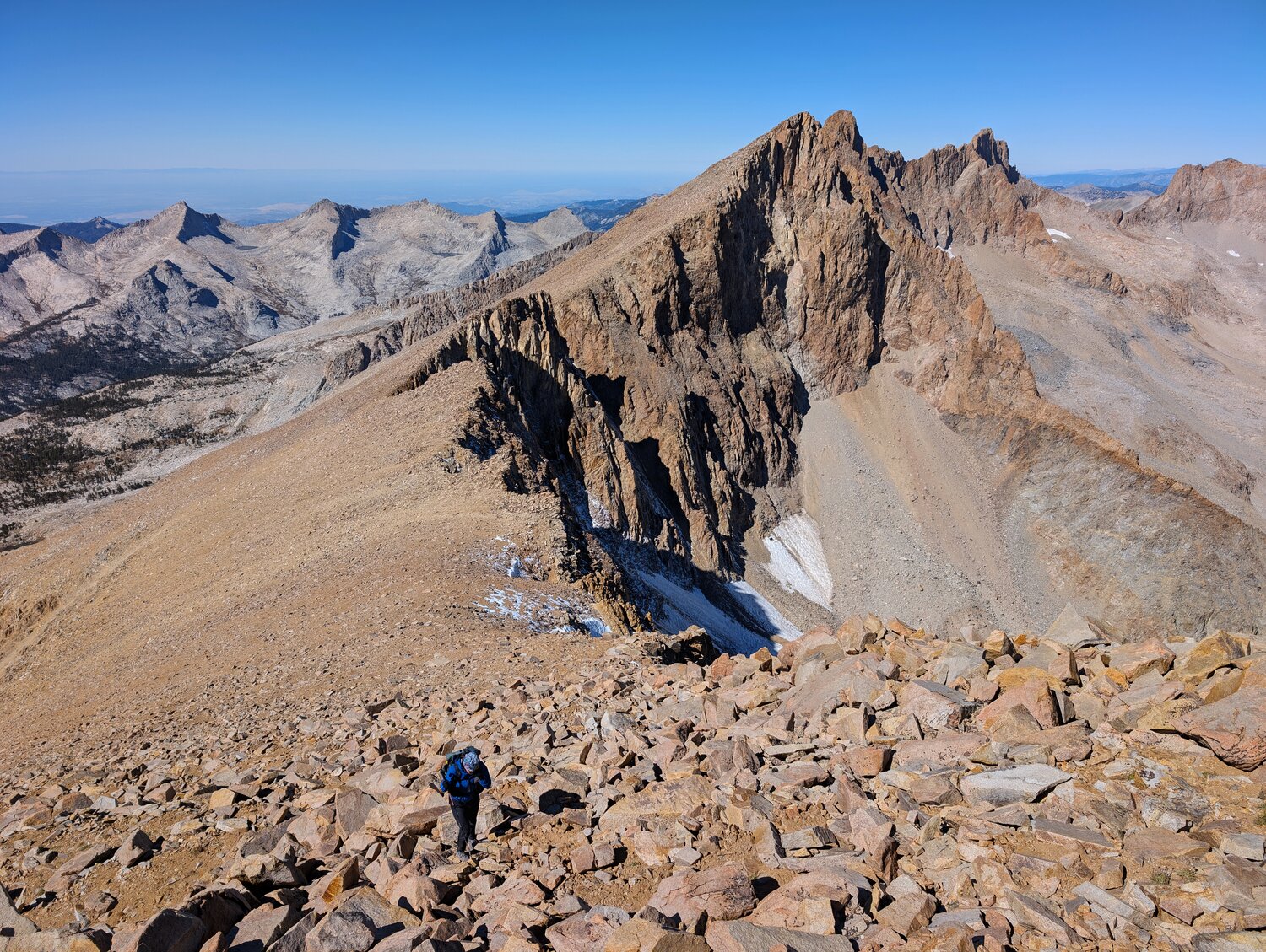 We made pretty quick work of the descent. This climb isn’t difficult by any means, just a sand/talus climb (though a pretty long one), without much loose rock, or any other real difficulty to report.