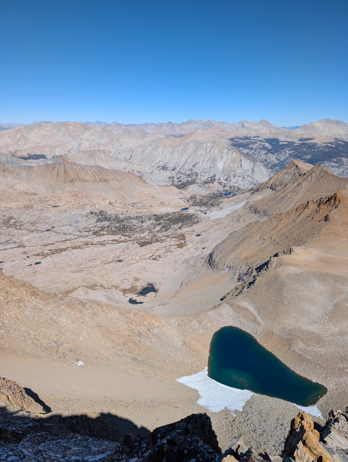 Mount Ritter and Banner Peak far to the north, with Mount Goddard at right.